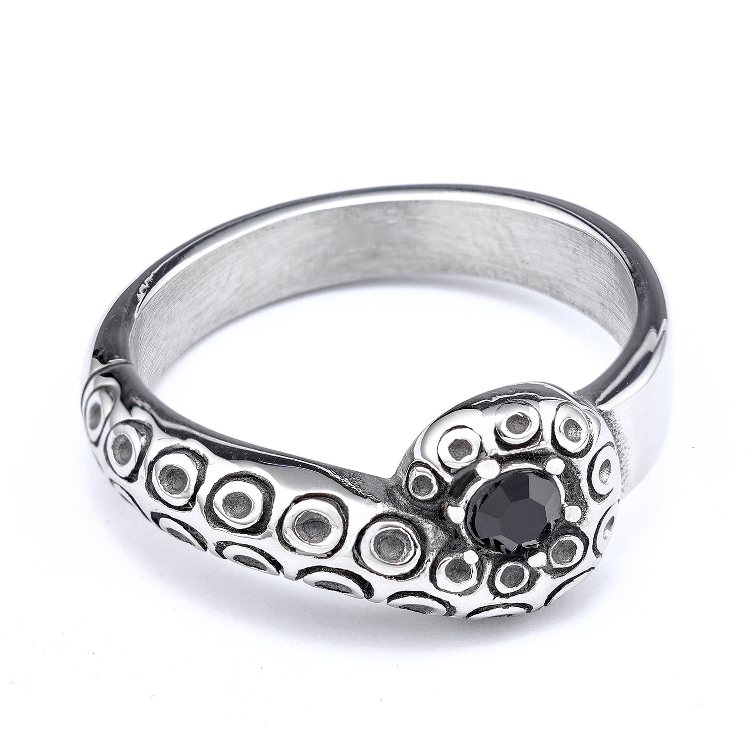 Fierce Animal Series Snake-Inlaid Black Diamond Titanium Ring